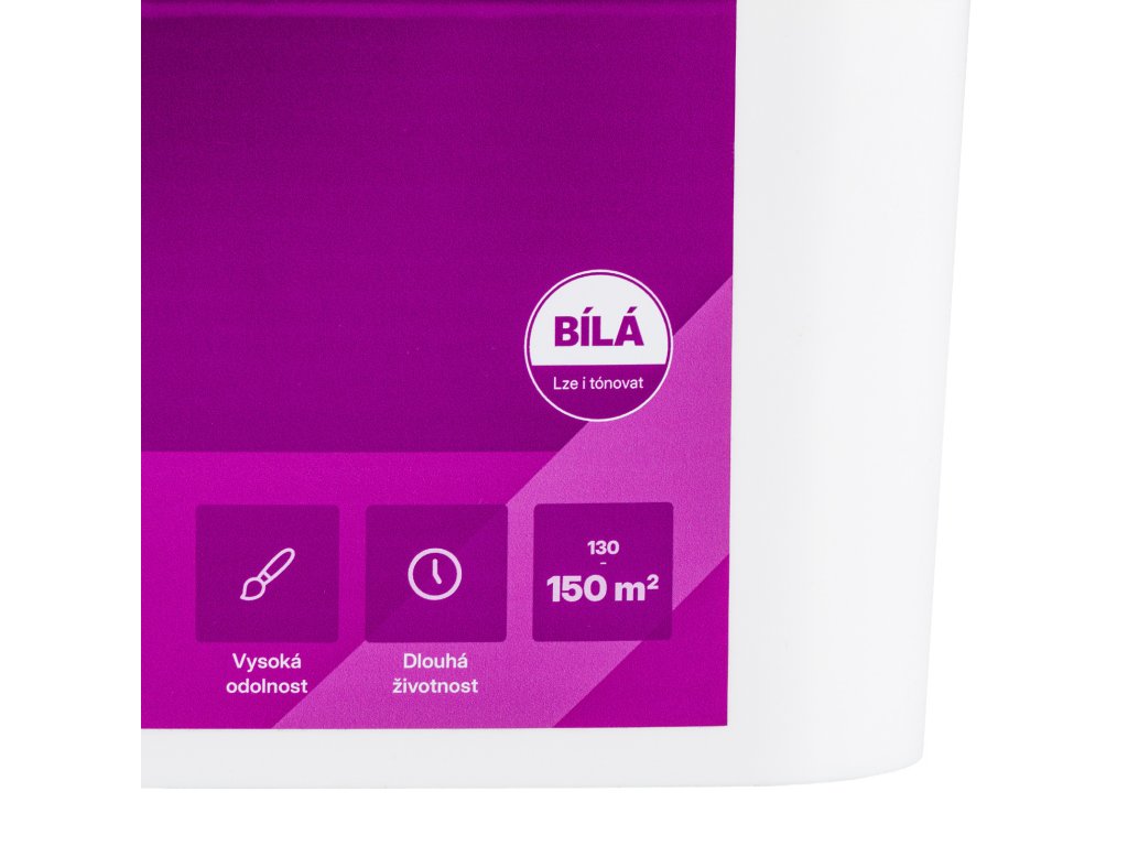 Profesionály vyvinutá interiérová bílá barva s extra vysokou kryvostí. Paropropustná, omyvatelná, tónovatelná. Vhodná pro nové i starší omítky. Český výrobek. Záruka 5 let.